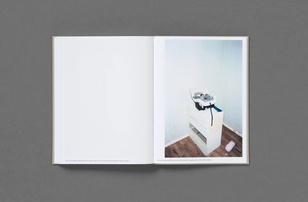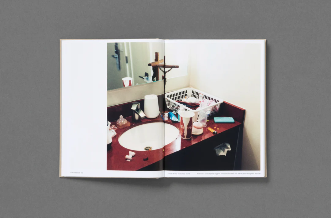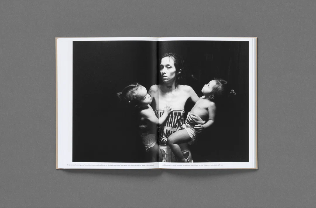 At the center of the book is Sierra Kiss and her young family. A friendship developed after Kircher made portraits of Kiss in her home in Los Angeles. Over the course of the four years they have known each other, Kircher has documented her experience of homelessness, addiction, repeated pregnancies and domestic abuse. The work reveals a broken system of support – from shelters to churches and social services – eroded by chronic underfunding and government policy. When the scaffolding of the world we inhabit fulfills its own promise to keep women in states of dependency and impoverished people in states of powerlessness, how can we expect new generations of healthy, safe and cared for families to flourish?