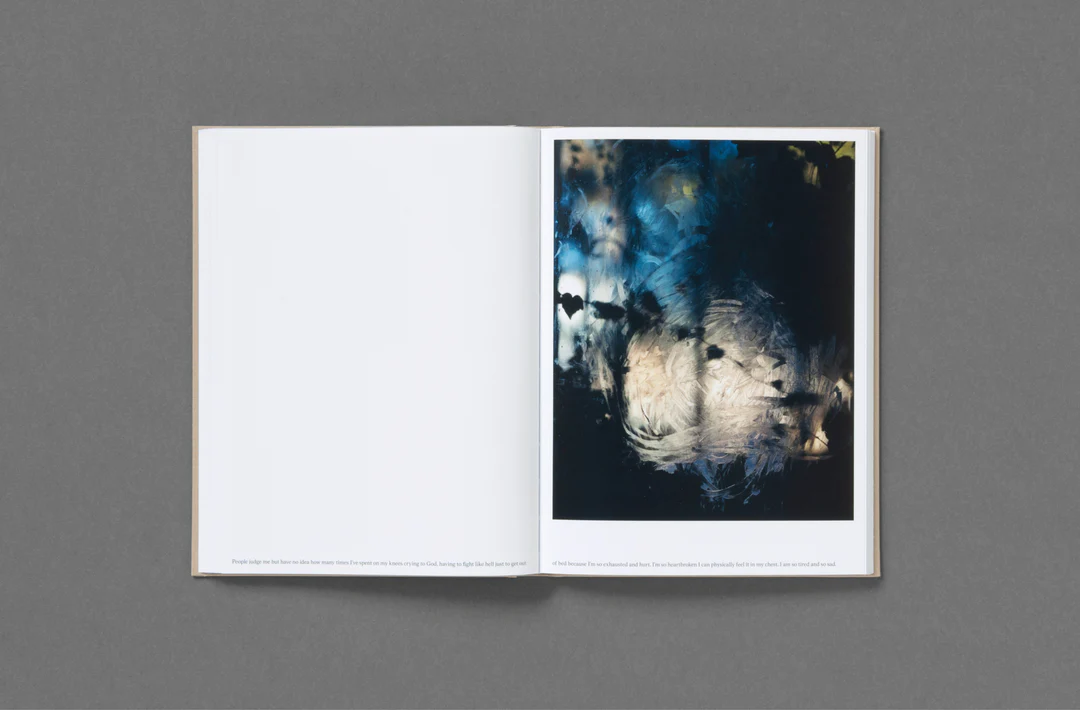 New Genesis interweaves texts pulled from Kiss’ Instagram stories that offer a parallel testimony and a powerful internal monologue of her mental health, isolation and resolve as her life goes on. Drawing on Kircher’s ongoing investigation of familial trauma and his own experience as a child to a young mother caught navigating abuse, this book highlights the realities of being born into circumstances that often stem from previous generations and bleed into the next. New Genesis unfolds as an intimate portrait of survival and resilience within the corrupt and cruel structures of modern capitalism and the American welfare system.