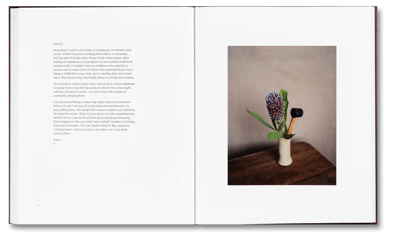 TIME TO KILL is an evocative interrogation of gendered aging, unpacking the ideals of beauty, caretaking, and maternal and domestic duty imposed on women over the course of their lives. It unfolds through a compelling combination of image and text, with photographs encompassing portraits of women, landscapes, and spaces both vast and claustrophobic, as well as still lifes in which plants, domestic objects, and weapons are absurdly combined, alluding to impermanence and cultural double standards.