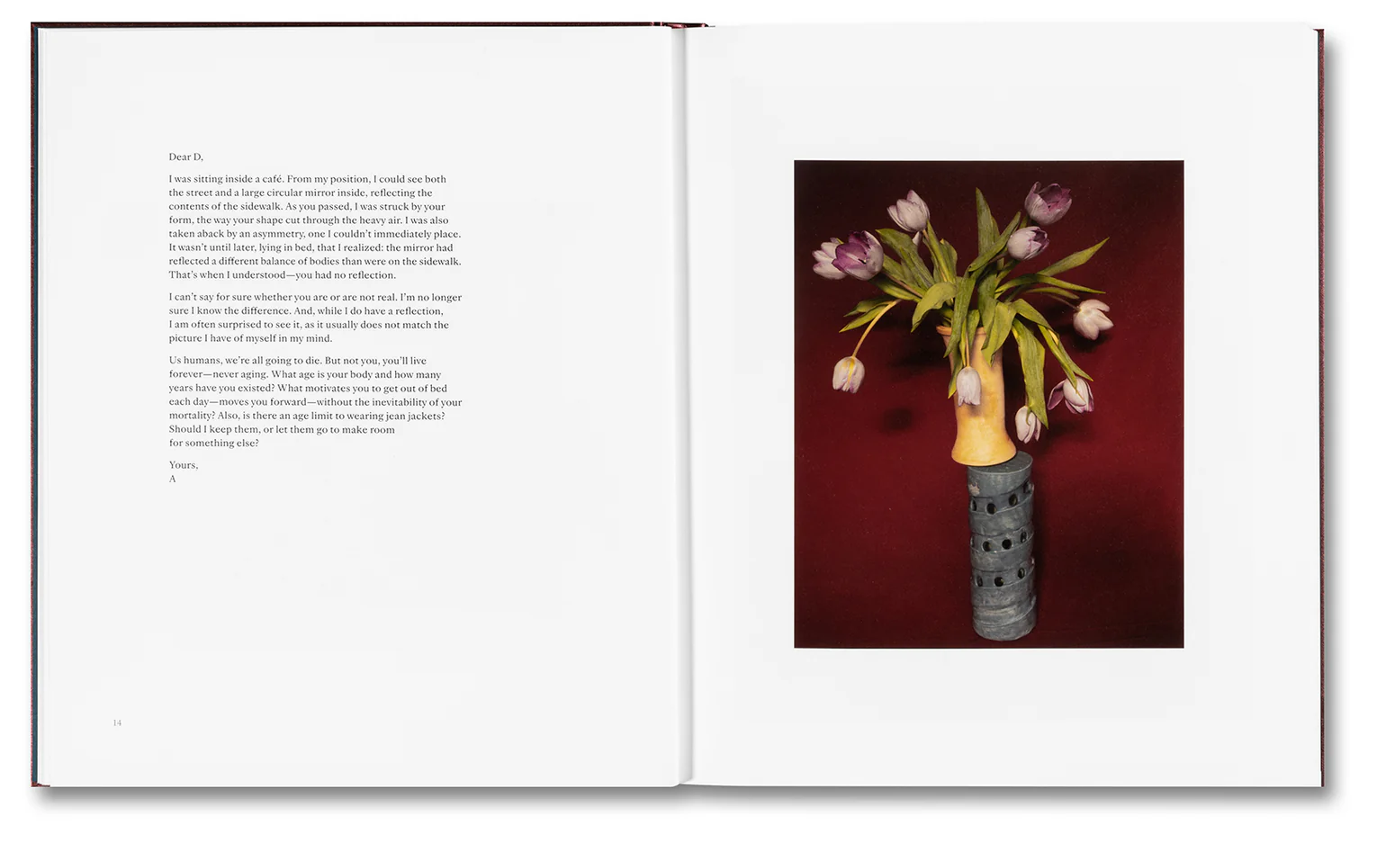 This distinctive visuality is interwoven with letters written by Parlato to an ambiguous, ageless, and perhaps illusory recipient. Through these entwined mediums, the artist looks both out and in, reckoning with a wild variety of physical and emotional experiences including the disjuncture between the way we see ourselves and the ways others see us as we age. Bodily transformation and the passing of time are pictured as both brutal and freeing as Parlato carves out a psychological space to contend with her fears and fantasies around aging in ways verging on the eerie and surreal. Building on the rich visual language of Parlato’s celebrated book Who is Changed and Who is Dead (2021), TIME TO KILL examines selfhood, motherhood, sacrifice, and visibility in an unflinching confrontation with what it means to be mortal.