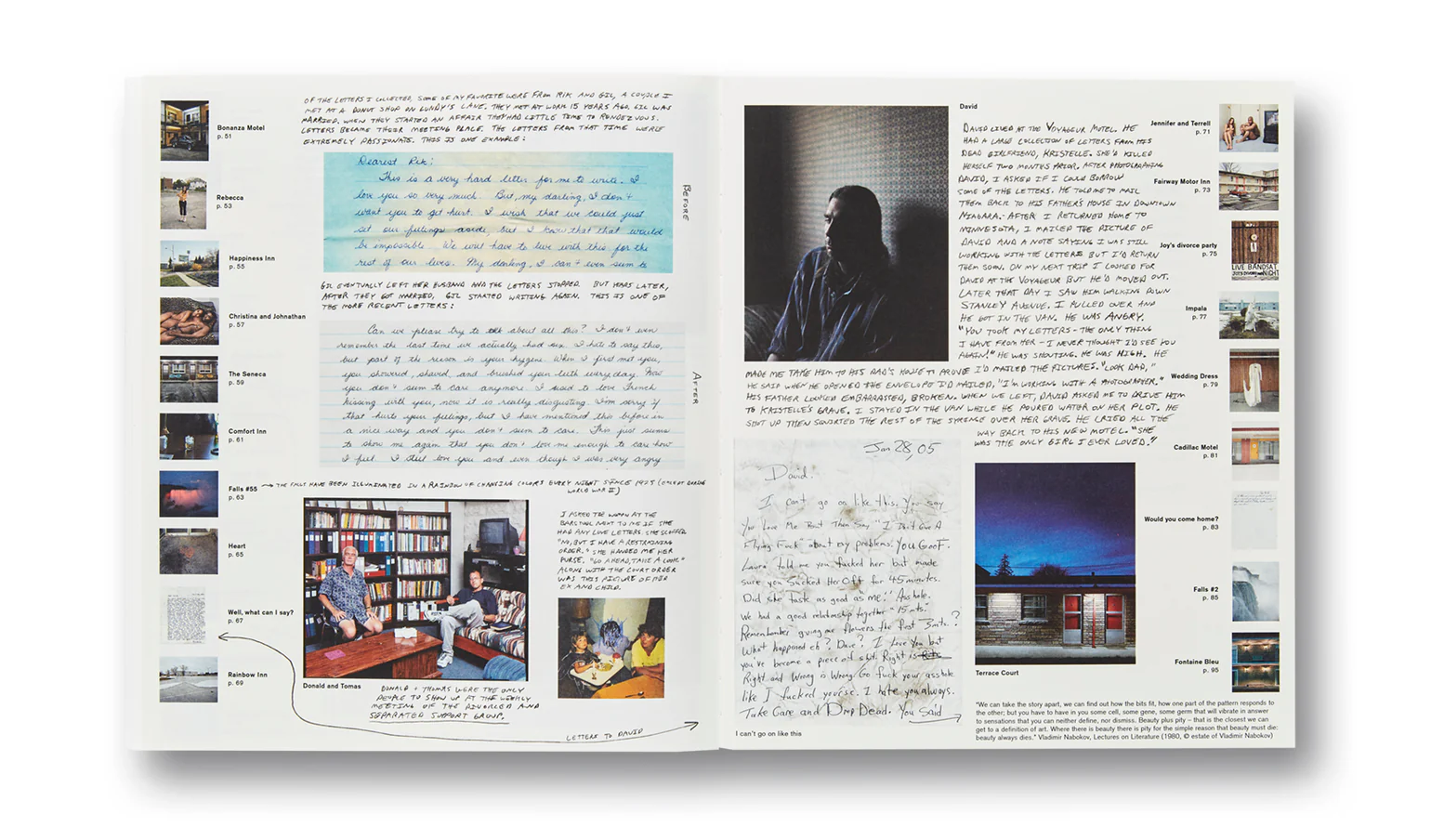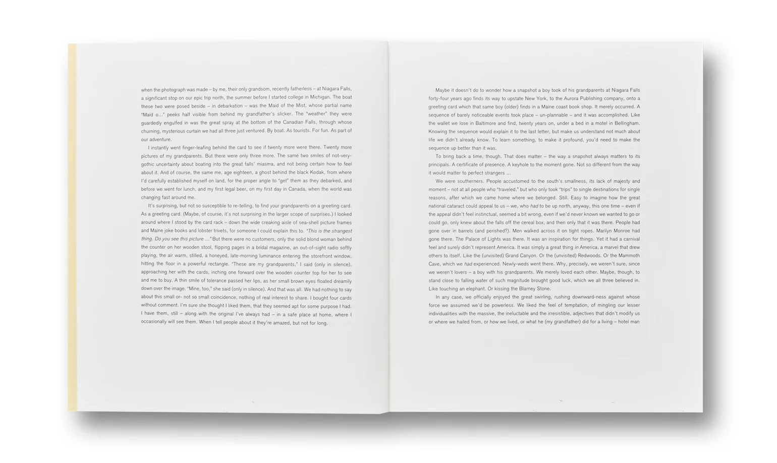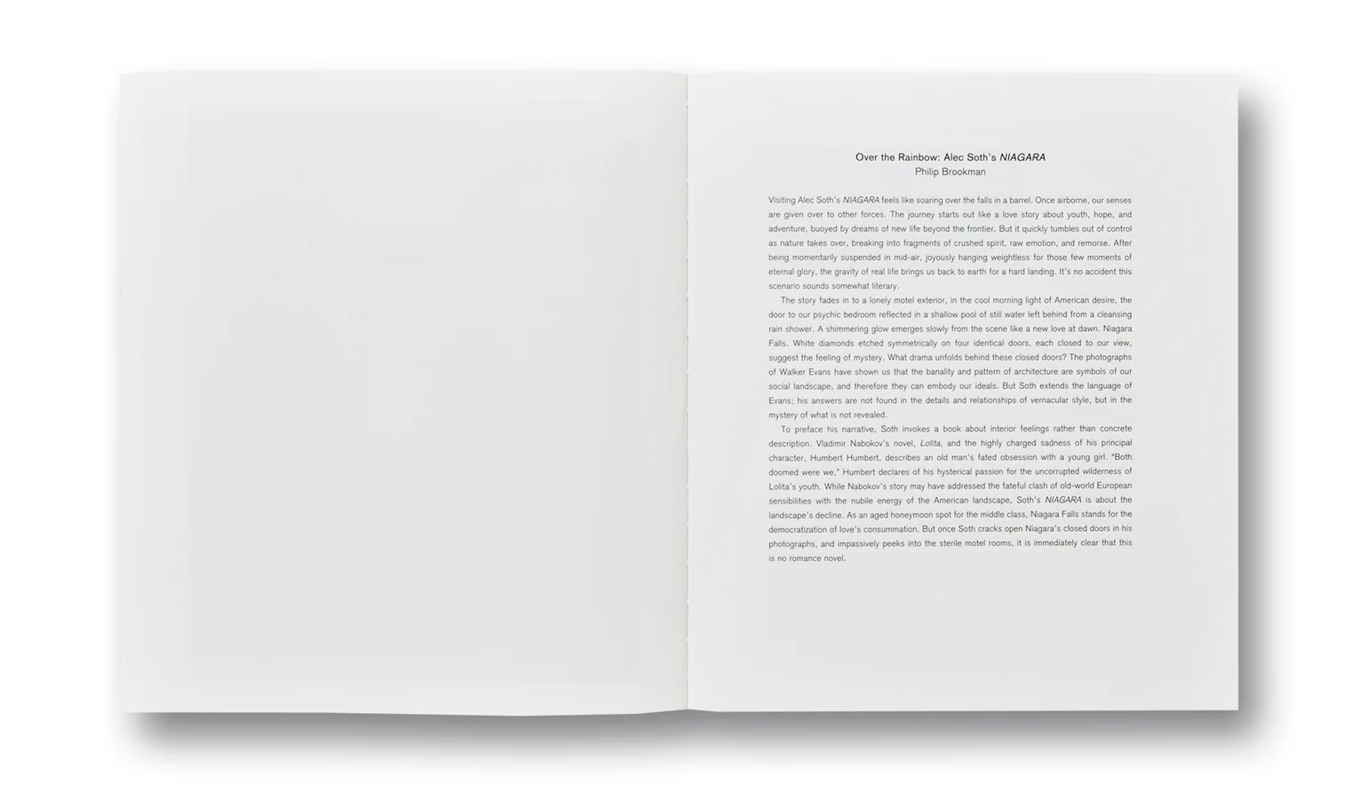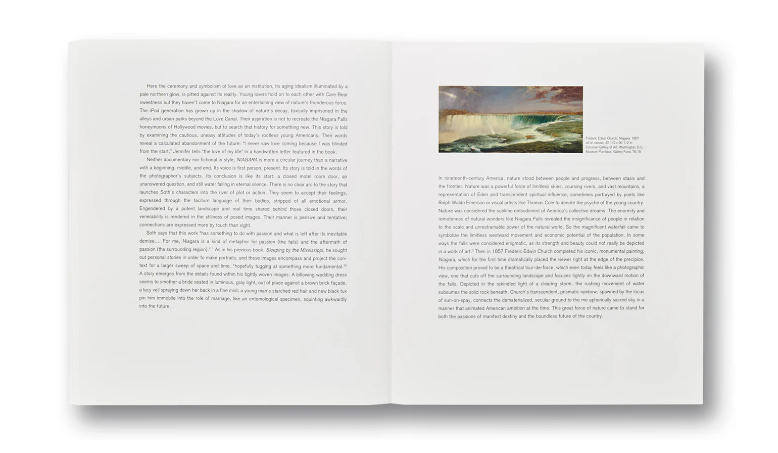 In the follow-up to his critically acclaimed debut monograph Sleeping by the Mississippi, Alec Soth turned his eye to another iconic body of water, Niagara Falls. As with his photographs of the Mississippi, Soth’s pictures of Niagara are less about natural wonder than human desire. “I went to Niagara for the same reason as the honeymooners and suicide jumpers,” says Soth, “the relentless thunder of the Falls just calls for big passion.” Working over the course of two years on both the American and Canadian sides of the Falls using a large-format 8×10 camera, the photographs are rigorously composed and richly detailed. Soth depicts newlyweds and naked lovers, motel parking lots and pawn shop wedding rings. Throughout the book, Soth has interspersed a number of love letters from the subjects he photographed. We read about teenage crushes, workplace affairs, heartbreak and suicide. Oscar Wilde wrote of the Falls, “The sight of the stupendous waterfall must be one of the earliest, if not the keenest, disappointments in American married life.” In Soth’s Niagara, we see both the passion and the disappointment. His pictures are a remarkable portrayal of modern love and its aftermath.