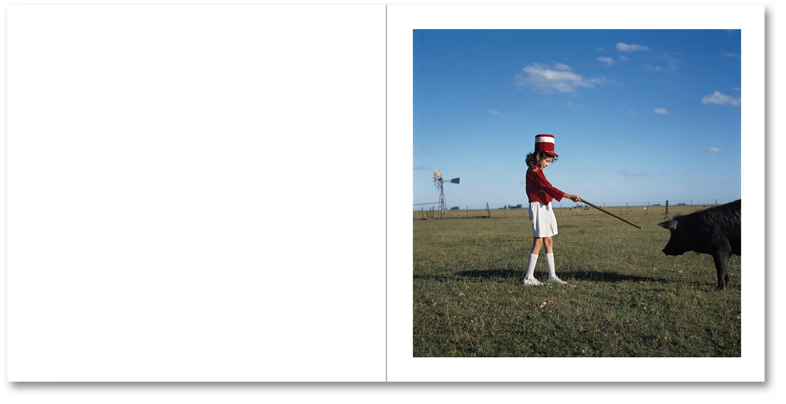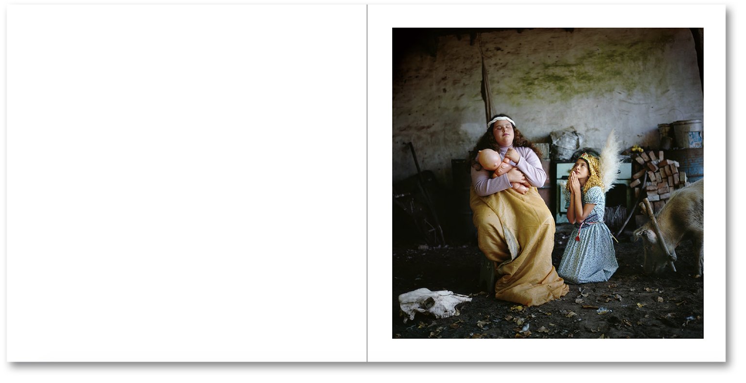 For more than two decades, Alessandra Sanguinetti has been photographing the lives of Guillermina and Belinda, two cousins living in rural Argentina, as they move through childhood and youth toward womanhood. This volume, originally published in 2010 and reissued now as the first instalment of a trilogy, chronicles the first five years of their collaboration. Sanguinetti’s images portray a childhood that is both familiar and exceptional. The farmlands of western Buenos Aires province are a particular mix of the modern and traditional, where life is lived in consonance with animals and rugged landscapes. Against this backdrop, Guille and Belinda go through the childhood rites of dressing up and make believe, exploring and appropriating the world around them as they go. As they slip between roles, alternately performing for and being caught by Sanguinetti’s camera, the profound bond between the two girls is unmistakable. Approaching the precipice of early adolescence, their games are imbued with the poignant weight of their dreams and desires as the world of play meets that of reality. By depicting the lives of women and girls within the conventionally masculine world of Argentinan gauchos and farmers, Sanguinetti’s book interrogates the frameworks of mythologies of all kinds, honouring lives that are usually unseen. The Adventures of Guille and Belinda is a portrait of rural childhood at once quiet and poetic, in which the fantastic and the mundane are intimately entwined.