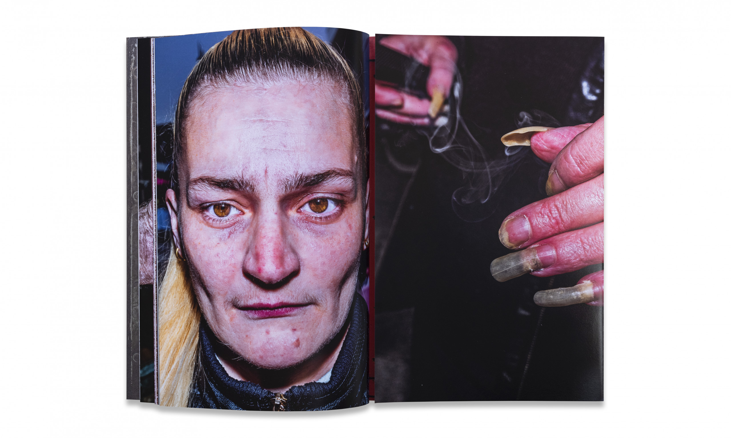 The design of his new monograph directly draws upon the themes which Gilden investigated whilst producing the work. Bound using stainless steel screws to appear like a factory manual, the book is presented in a beautiful cover printed with silver on black paper, just like those worn doors found in real-life warehouses and factories; inside, instead of machinery, a series of large scale saturated images grab your attention, forcing you to pay full attention to the subjects.