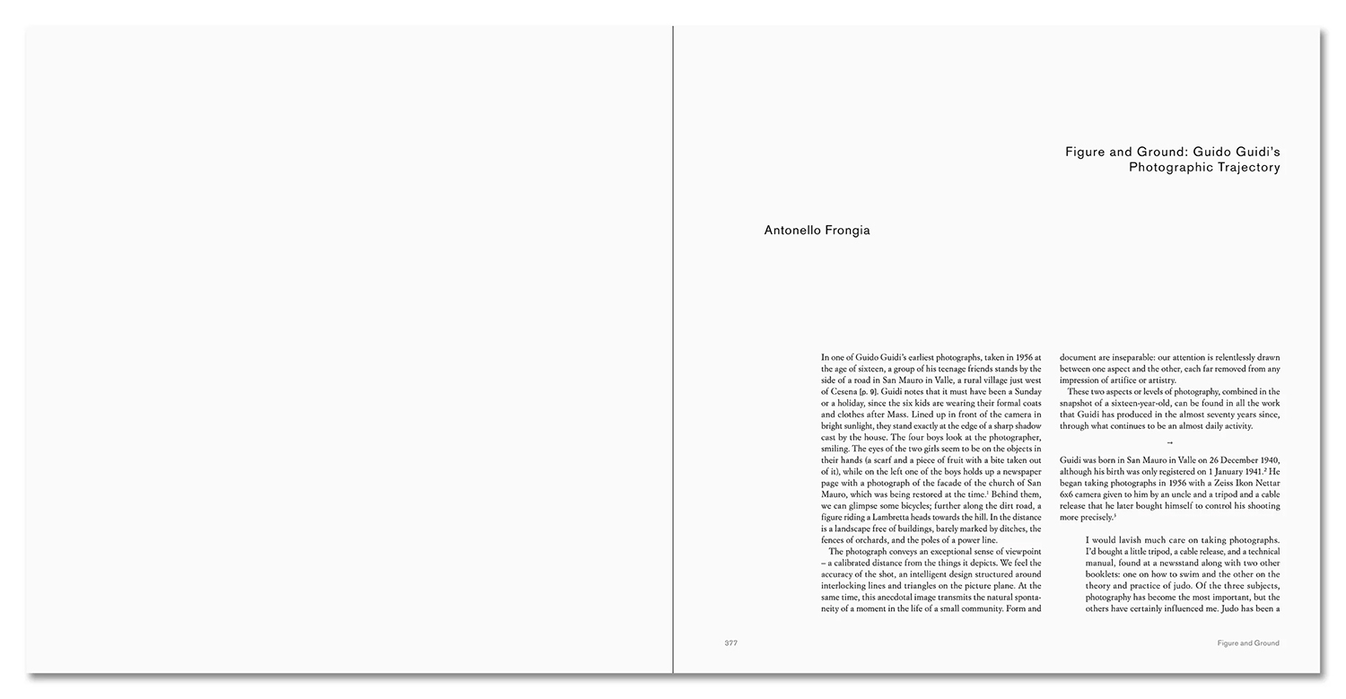 Coinciding with a major retrospective exhibition at MAXXI, Rome, Col tempo, 1956–2024 provides a complete and long-awaited retrospective of the career of Guido Guidi, sequenced by the artist himself in his typically illuminating, associative style. The book begins with some of the earliest photographs Guidi made, aged fifteen, in the countryside around his home in Cesena in the Italian region of Romagna. The sequence that follows, covering almost seventy years, encompasses a wide range of styles, forms, and approaches as it traces the evolution of one of the most important voices in contemporary photography. It includes journeys to the USA, Russia, Turkey, and Portugal, and studies of the works of architects including Carlo Scarpa, Mies van der Rohe, and Le Corbusier. Consistently, though, it returns to the modest agricultural landscapes where Guidi was born and still lives and works today, among which he has developed the revelatory visual language for which he is celebrated as a modern master.