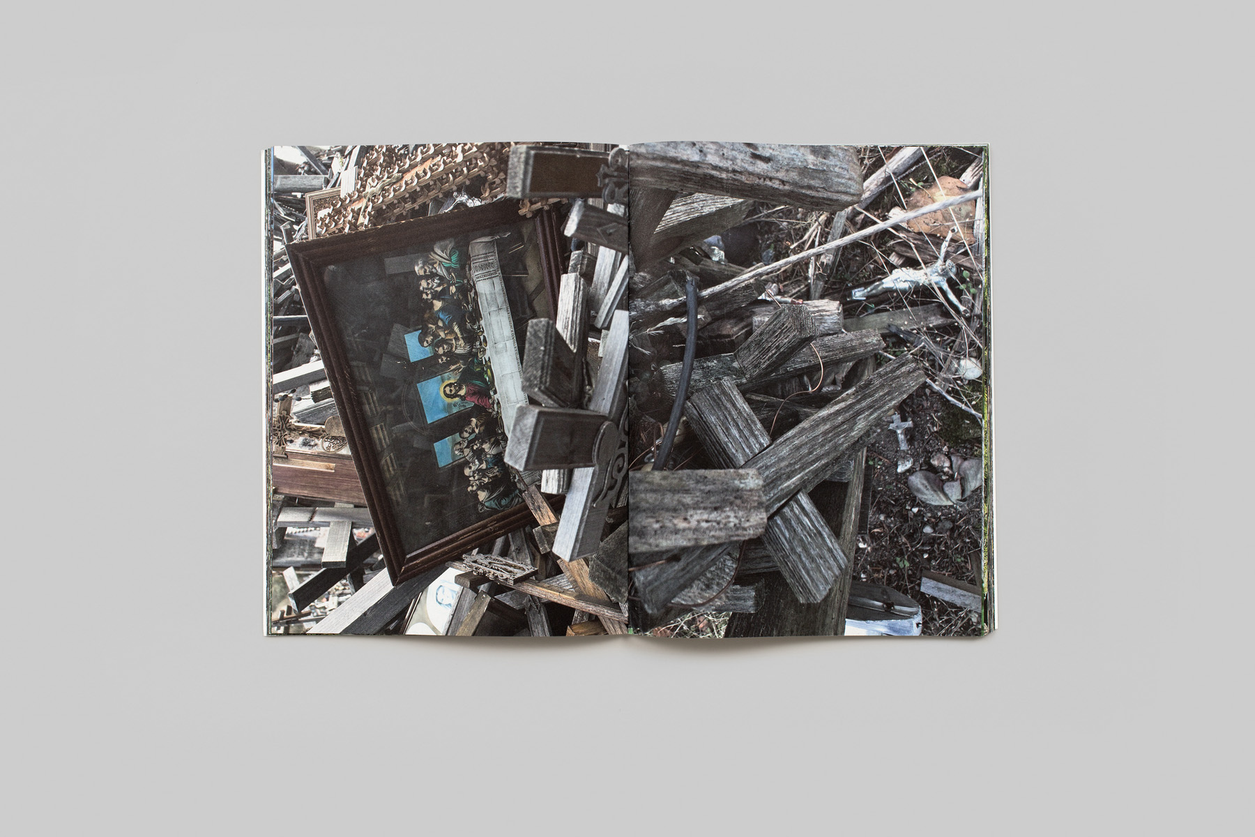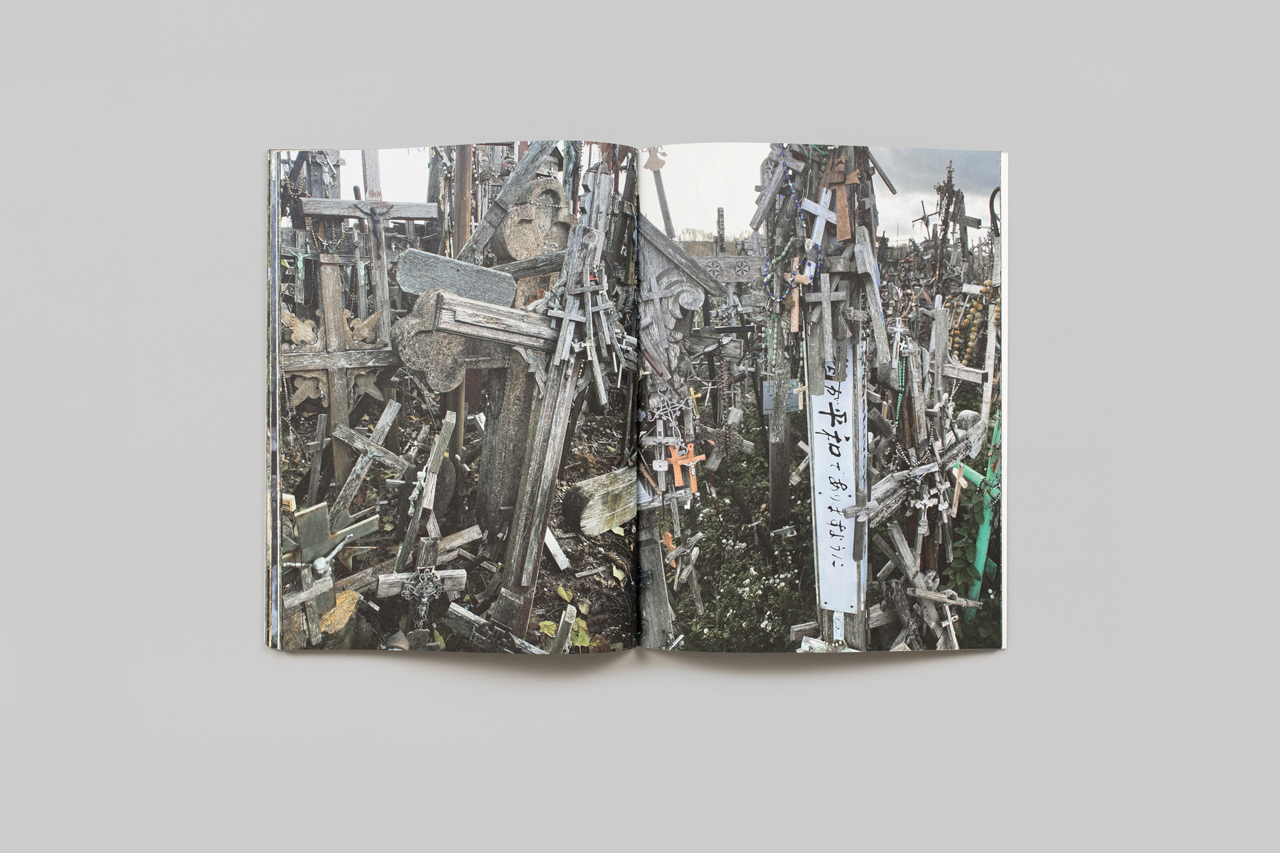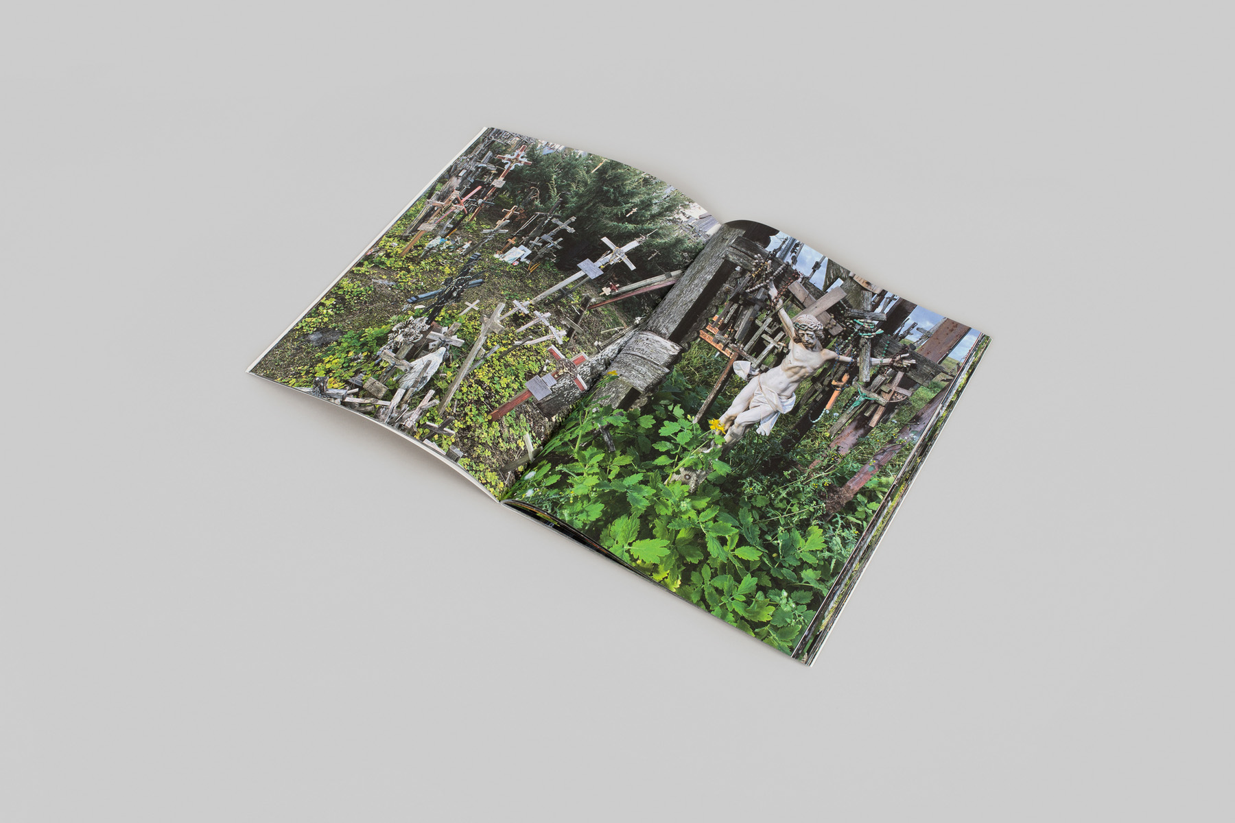 The infamous Hill of Crosses is a pilgrimage and tourist site near Šiauliai, Lithuania, which originated after the November Uprising of 1830–31, an extensive yet unsuccessful attempt to overthrow Russian rule. Jurgaičiai is Juergen Teller’s intimate response to this place of remembrance, which he visited with his Lithuanian wife Dovile Drizyte and her parents in autumn 2022. With his ever curious, surveying eye, Teller captures the intense spirituality of this sacred destination. Responding to over 100,000 crucifixes within just one acre, his images embody this tangled web of religious iconography, including a dense multitude of crosses, stone sculptures of Jesus Christ draped in rosary beads, and large wooden carvings. Teller singles out details of small effigies of Christ and other emblematic features, deftly framing them against the landscape in an act of candid self-reflection. The series takes on an even deeper personal significance in the context of the 2022 passing of fashion designer Vivienne Westwood, with whom Teller had collaborated since 2007, and his gallerist since 2013 Suzanne Tarasieve. He embeds portraits of these powerful yet vulnerable women into his collection of symbolic images, a compelling tribute to two personalities who continue to inspire his work.