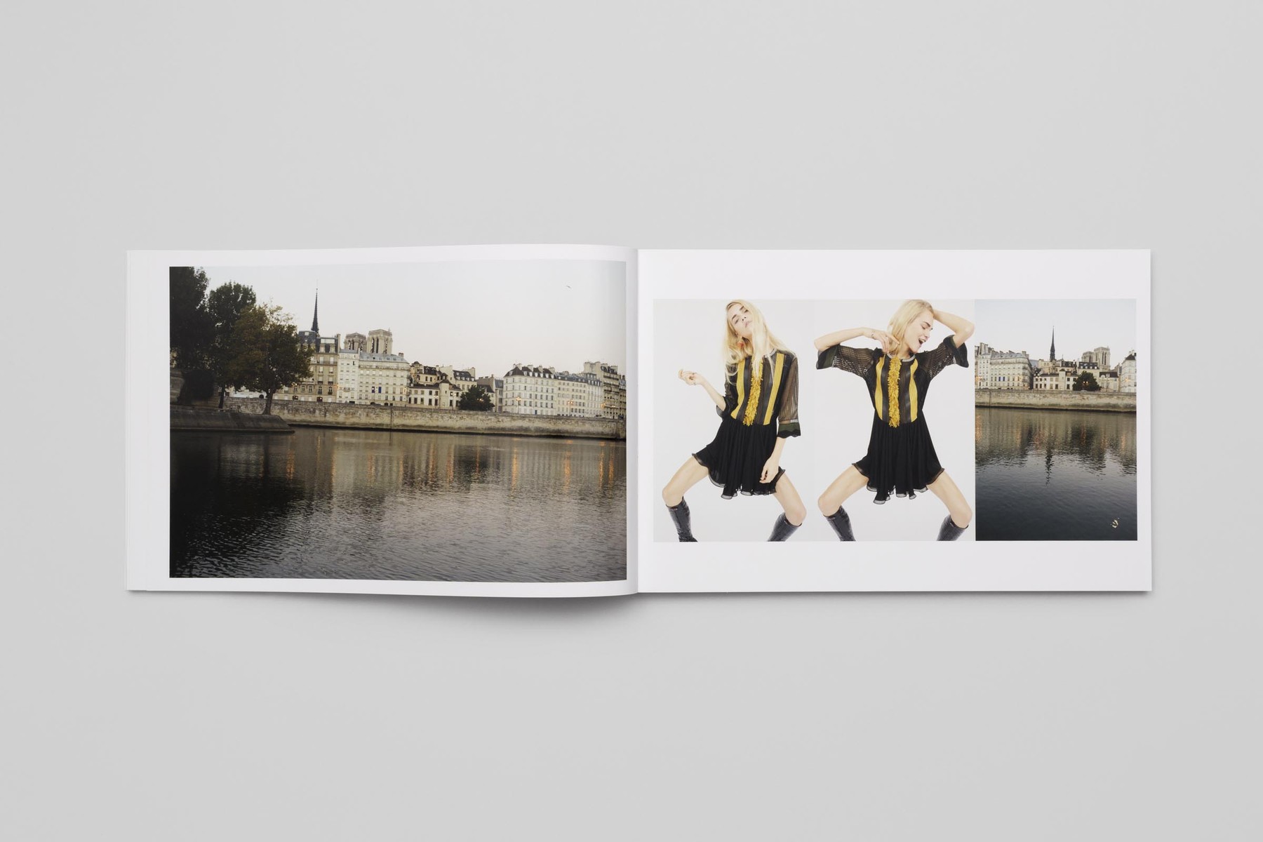 Following the success of I Just Arrived in Paris (Steidl, 2014) THE FLOW is the second book in the continuing collaboration between Juergen Teller and Nicolas Ghesquière, artistic director of Louis Vuitton. On 1 October 2014 Teller photographed Ghesquière’s Spring-Summer 2015 collection for the house, and the resulting book is a fluid mix of fashion photos in Teller’s inimitable guileless style and images of Paris shot while boating down the Seine. This combination of portraiture, still-life and landscape photography mirrors the eclectic influences and materials which Ghesquière synthesizes in his collections—a bold, unconventional flow whereby innovation unceasingly rejuvenates tradition.