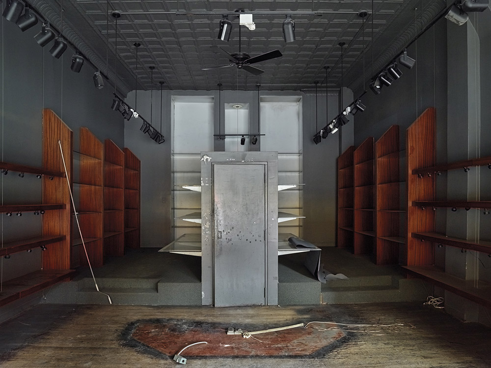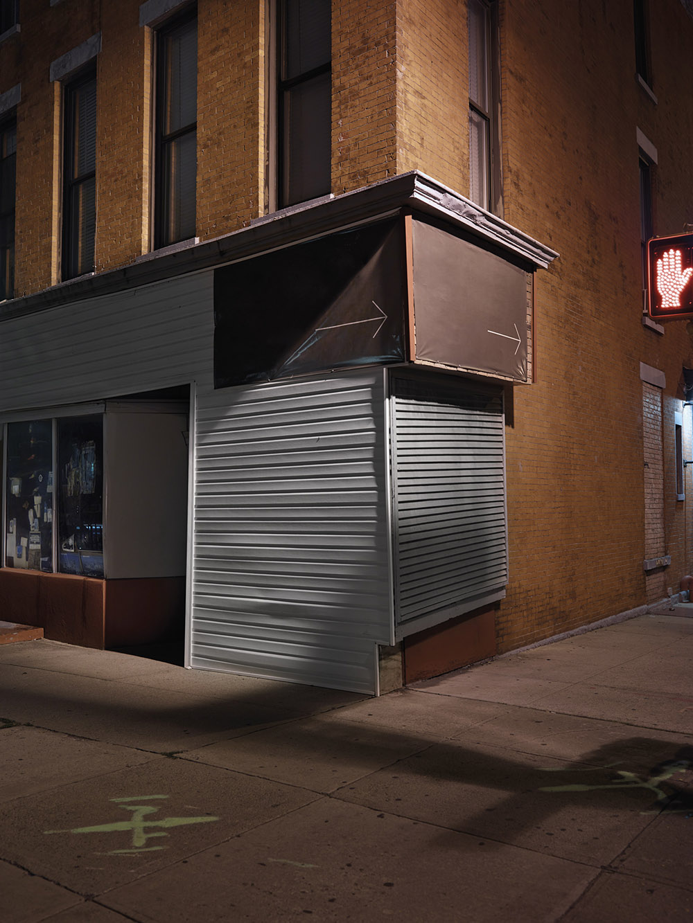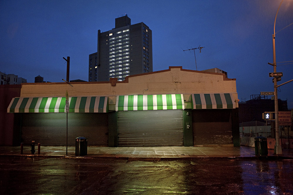 Dark City’ is a further exploration of the urban landscape at dusk and dawn, with a new focus on the effects of the recent economic turmoil on New York and other American cities. Shuttered stores and empty lots in city centers and fringe areas alike reveal a haunting and disquieting beauty. Occasionally, a person or the artist herself is visible as a ghosted image or shadow. Photographs in ‘Dark City’ also counterbalance signs of loss with a more optimistic message. They reveal a natural cycle of decay and rebirth in urban ecology, as objects such as ladders and brooms signal that the work of renewal is under way. ‘Dark City’ is ultimately a dynamic and ongoing dialogue between defined place and empty space that will fascinate general readers and urban specialists alike.