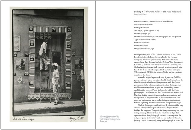 Mario García Joya’s A La Plaza con Fidel (To the Plaza with Fidel) is a rarity among the few photobooks to come out of Cuba after the Revolution. Photographed by the leading Cuban photographer and cinematographer ‘Mayito’ (Mario Garcia Joya) between 1959 and 1966 and later published in 1970, the book focuses its attention towards the vast crowds of Castro’s supporters and the festive atmosphere surrounding the revolution felt even at a time of the country’s more difficult economic moments. Books on Books #21 presents this little known book in its entirety with essays by historian Leandro Villaro.