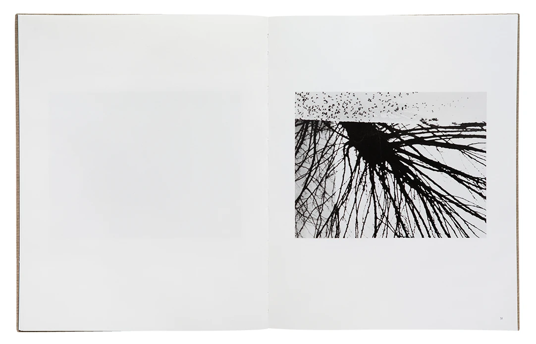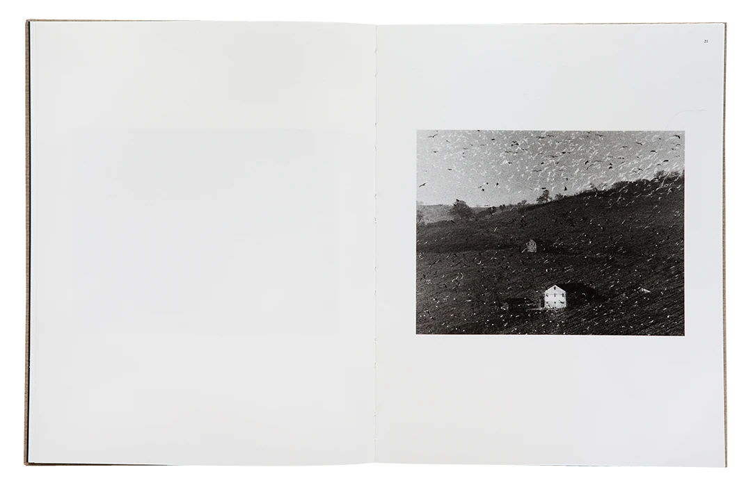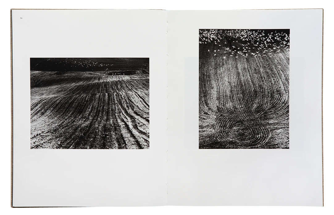 Photographer, painter, and poet Mario Giacomelli acquired his first camera in the early 1950s and immediately recognized the connections between the practice of painting and capturing light through his lens. He soon set up his own darkroom, where, choosing to work with high-contrast paper, he developed a distinctive photographic eye. With camera movement, blurred focus, and the interplay of light and shadow, Giacomelli created dreamlike scenes in which beings emerge as ephemeral apparitions. His taste for lyrical abstraction, especially in painting, is evident in his photographs, which often reveal his inner state—particularly through the graphic intensity of light variations. Deeply attached to his native Marche region in Italy, Giacomelli captured endless plains traced with plowed furrows, shadows stretching across fields, and rural house façades, many photographs also offering glimpses of birds, clouds, female faces, or other forms. His birds rise from dense vegetation, appear like shadow puppets on translucent surfaces, dwell within vaporous clouds, or materialize as fragile presences. Choreographed flocks of white birds echo the lines of the foliage as animal and plant realms dissolve into each another. Between arrival and disappearance, reality and dream, Giacomelli’s birds resemble calligraphic marks spreading into a musical score against the backdrop of a rural landscape.