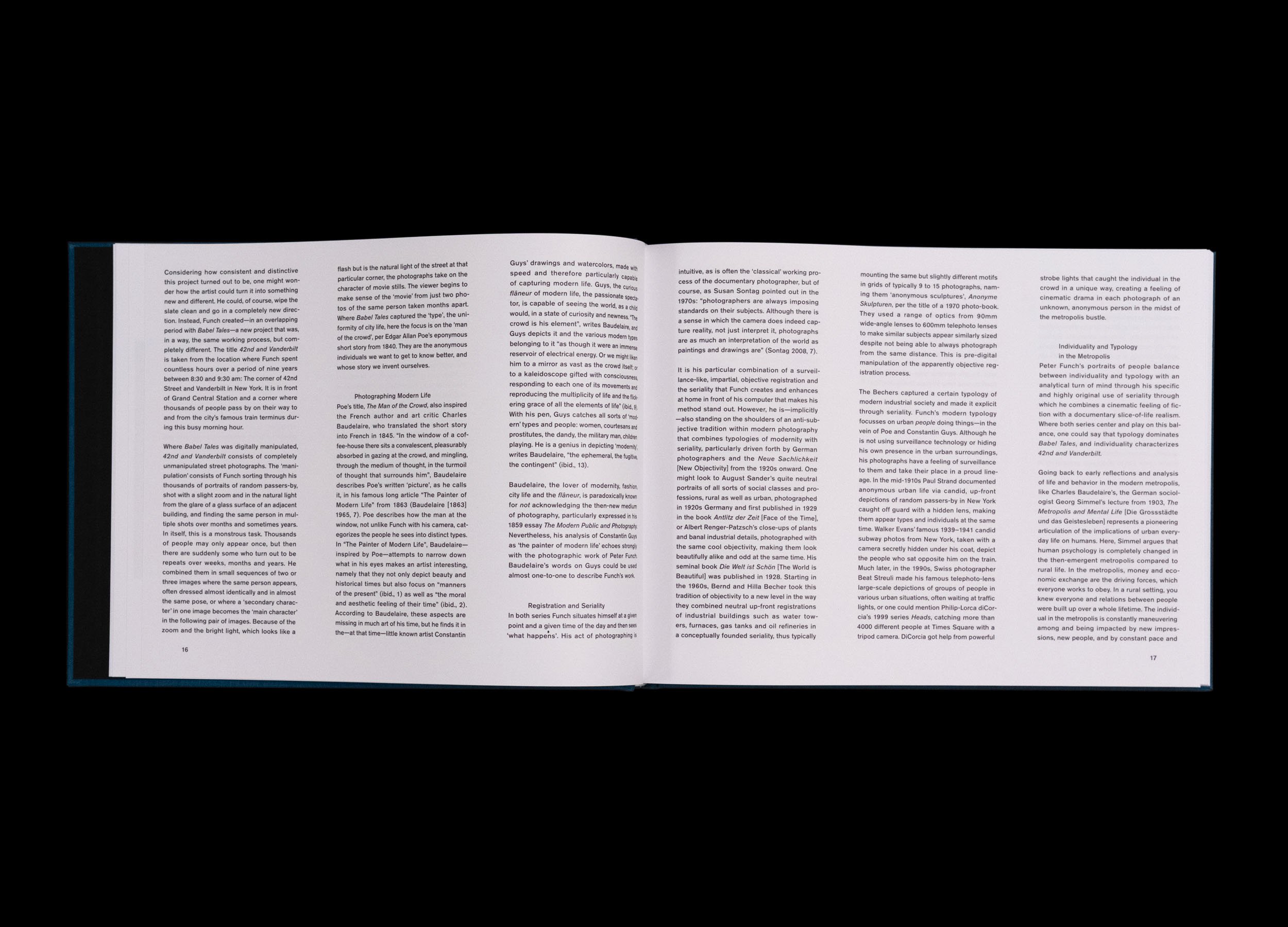 For the first time, Peter Funch’s iconic photographic series Babel Tales and 42nd and Vanderbilt are brought together in a single book. The publication features texts by Professor Mette Sandbye, architect Ane Cortzen, author and art historian William Pym, gallerist Jesper Elg, and the internationally renowned authors Douglas Coupland and Paul Auster.