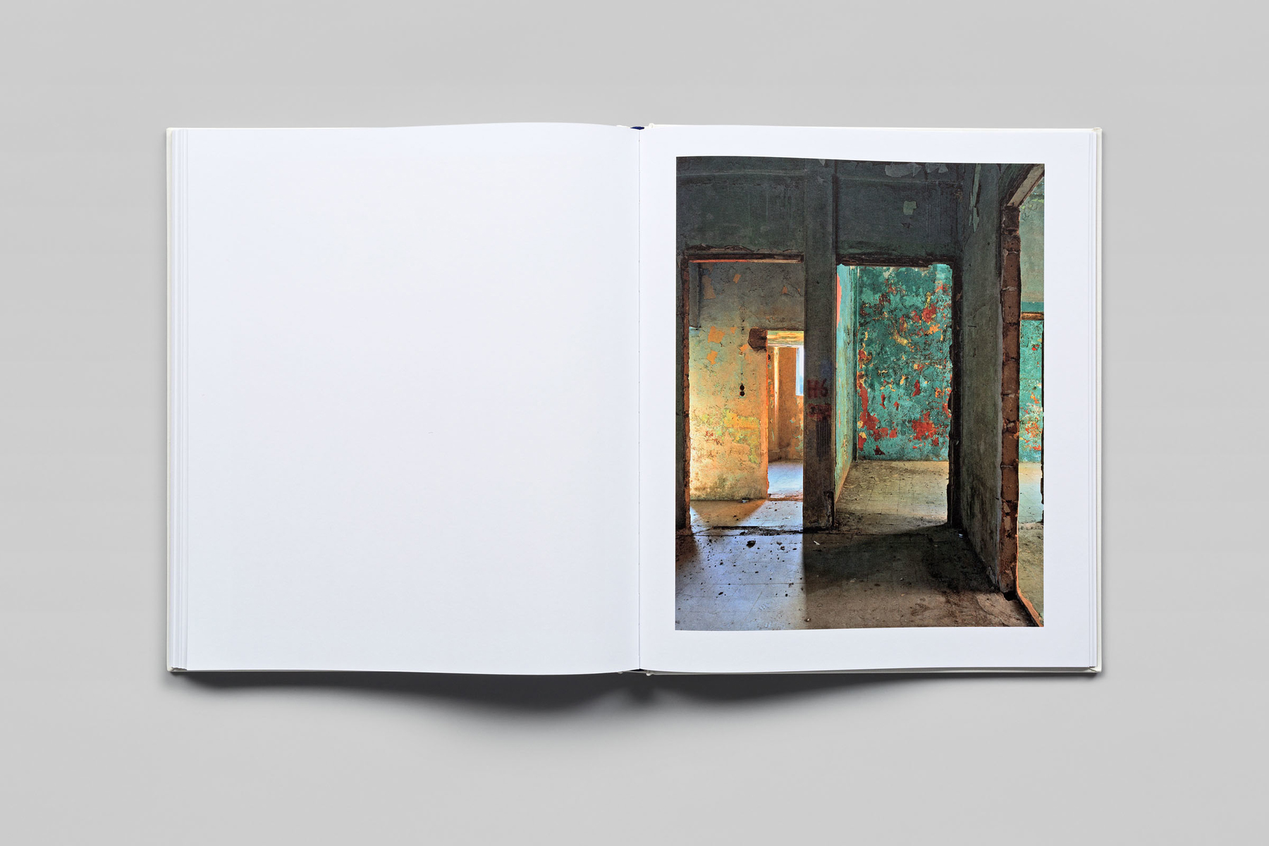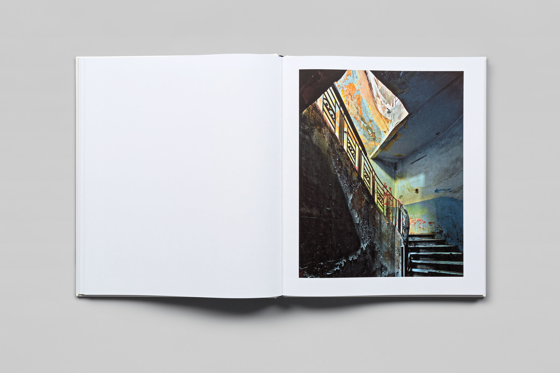 This book is Robert Poldori’s portrait of the interiors of the now demolished Hotel Petra in Beirut, a grand icon of the city’s pre-war history. The Hotel Petra was once one of the most popular hotels in Beirut, conveniently located in the city center adjacent to the Grand Theatre. After the Lebanese Civil War of 1975–90, Rafiq al-Hariri founded a holding company, Solidere, whose goal was the selective demolition and reconstruction of downtown Beirut’s urban fabric. In 1992 the Hotel Petra was set aside for later restoration, and from that moment essentially cut off from any human intervention.