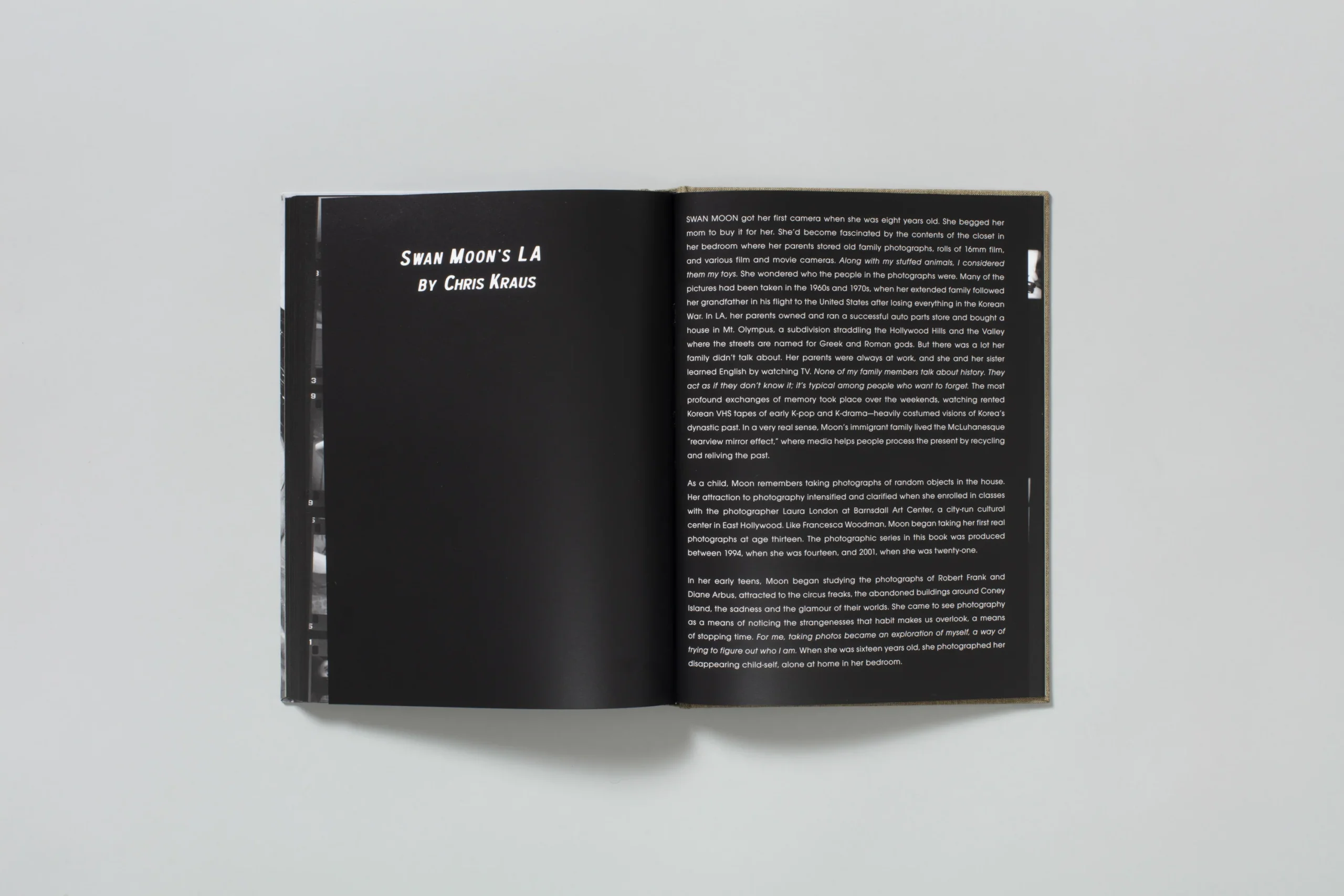 Designed with a nod to Hollywood’s silver screen, Swan Moon’s Swan Moon includes a curated soundtrack and character credits at the book’s conclusion. An afterword by the esteemed writer Chris Kraus brings clarity and context to Moon’s love letter to a nostalgic Los Angeles—her version of the city and its youthful inhabitants that feels both deeply personal and entirely lost to time.